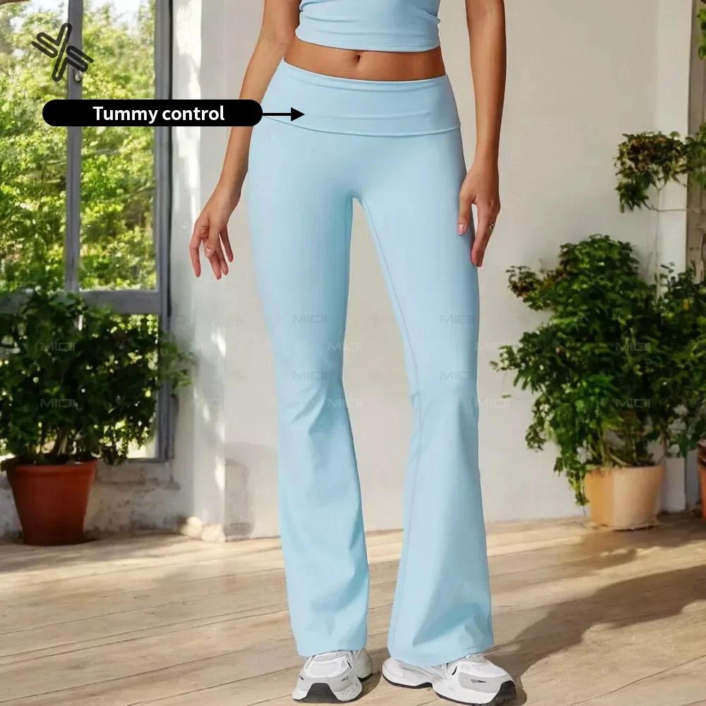 YISHENHON High Quality Gym Yoga Flare Leggings Hot Selling High-Waisted Wide Leg Pants for Women Solid Casual Sport Running