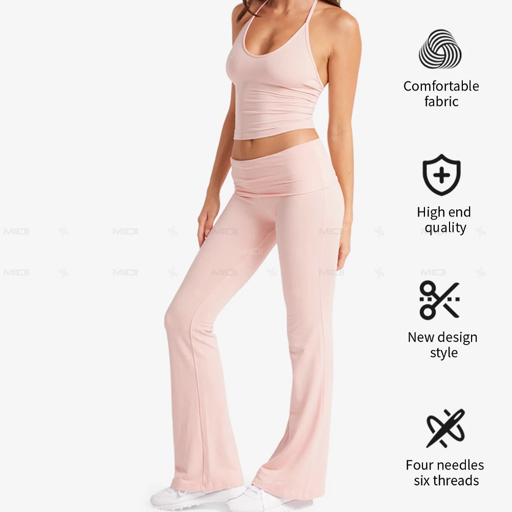 YISHENHON High Quality Gym Yoga Flare Leggings Hot Selling High-Waisted Wide Leg Pants for Women Solid Casual Sport Running