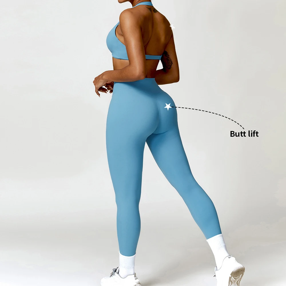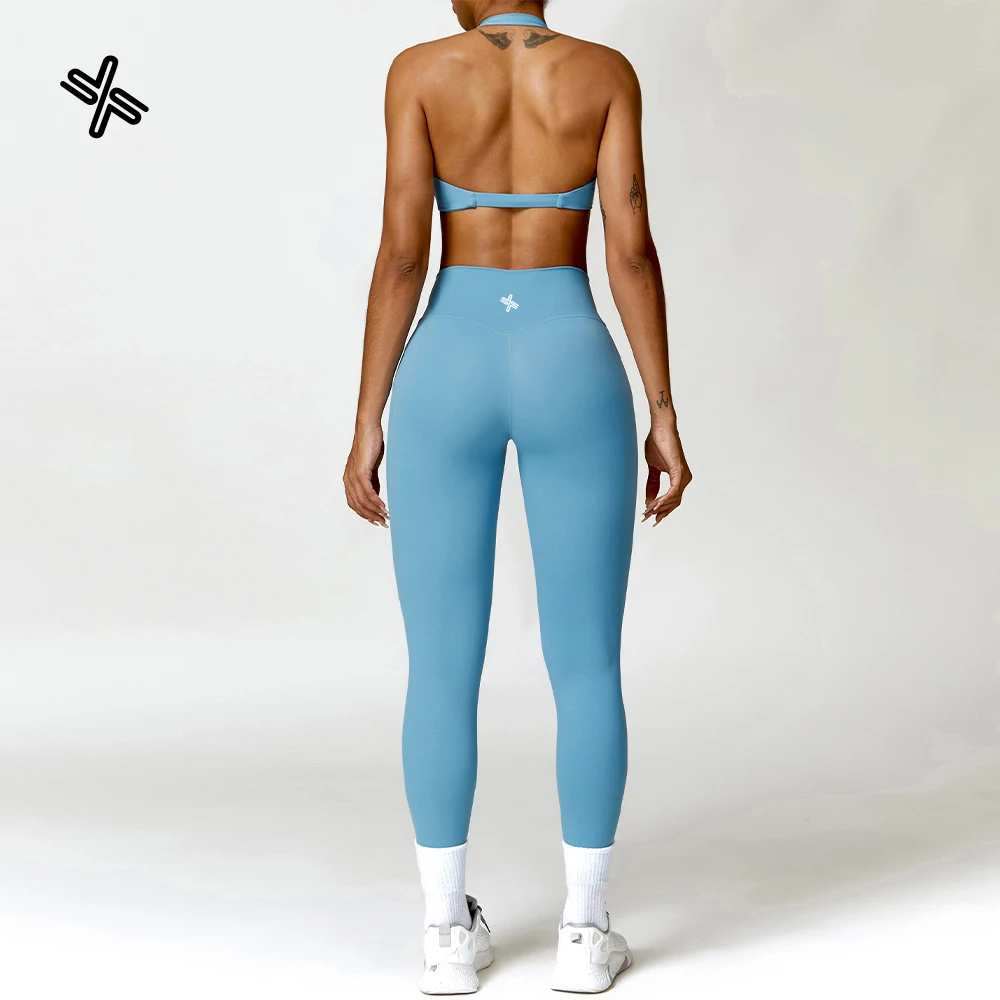 YISHENHON OEM/ODM Custom Workout Halter Scrunch Sports Bra Women Girls Stretchy Compression Quick Dry Padded Sexy Pants Polybag