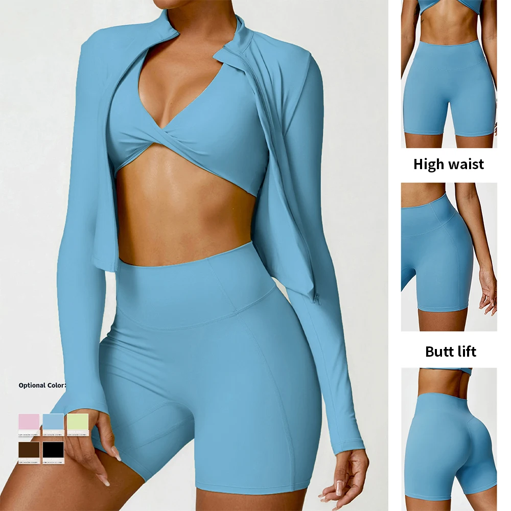 YISHENHON OEM Customization 4-Piece Yoga Suit for Women Butt Lift Sport Set Running Active Workout Clothing