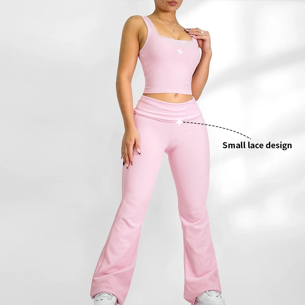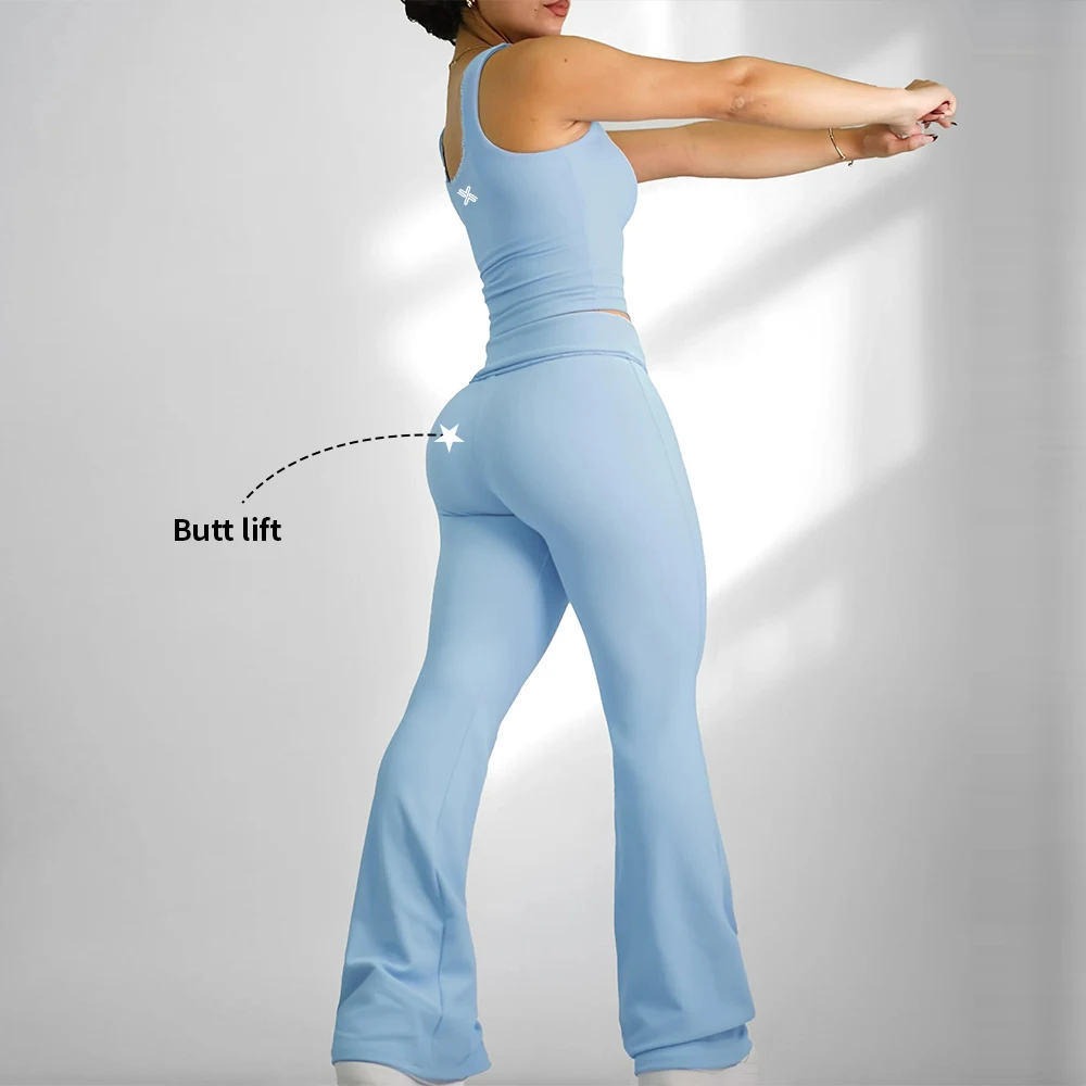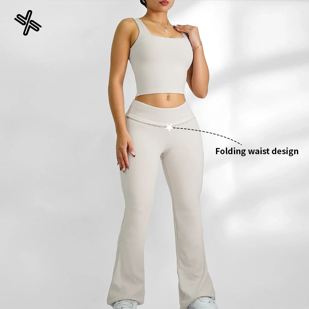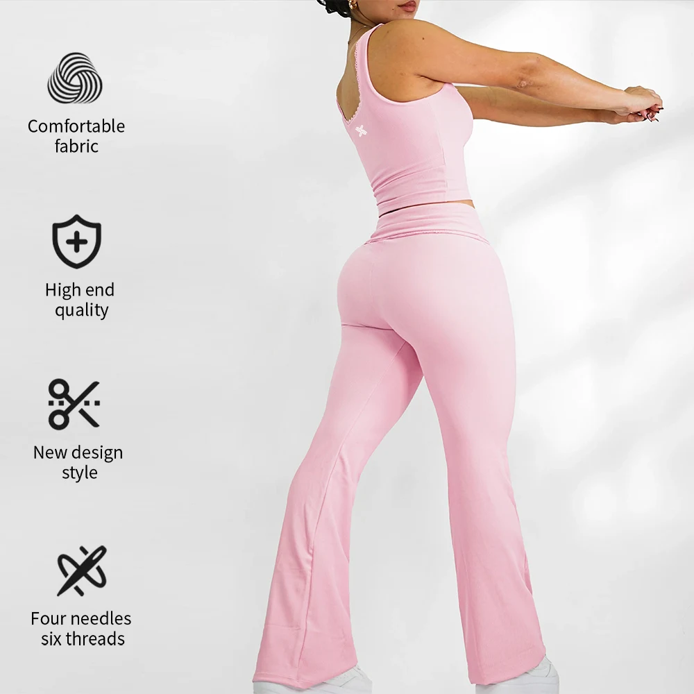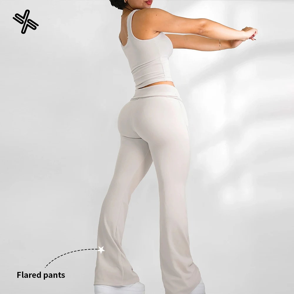YISHENHON High Quality Gym Yoga Flare Leggings Hot Selling High-Waisted Wide Leg Pants for Women Solid Casual Sport Running