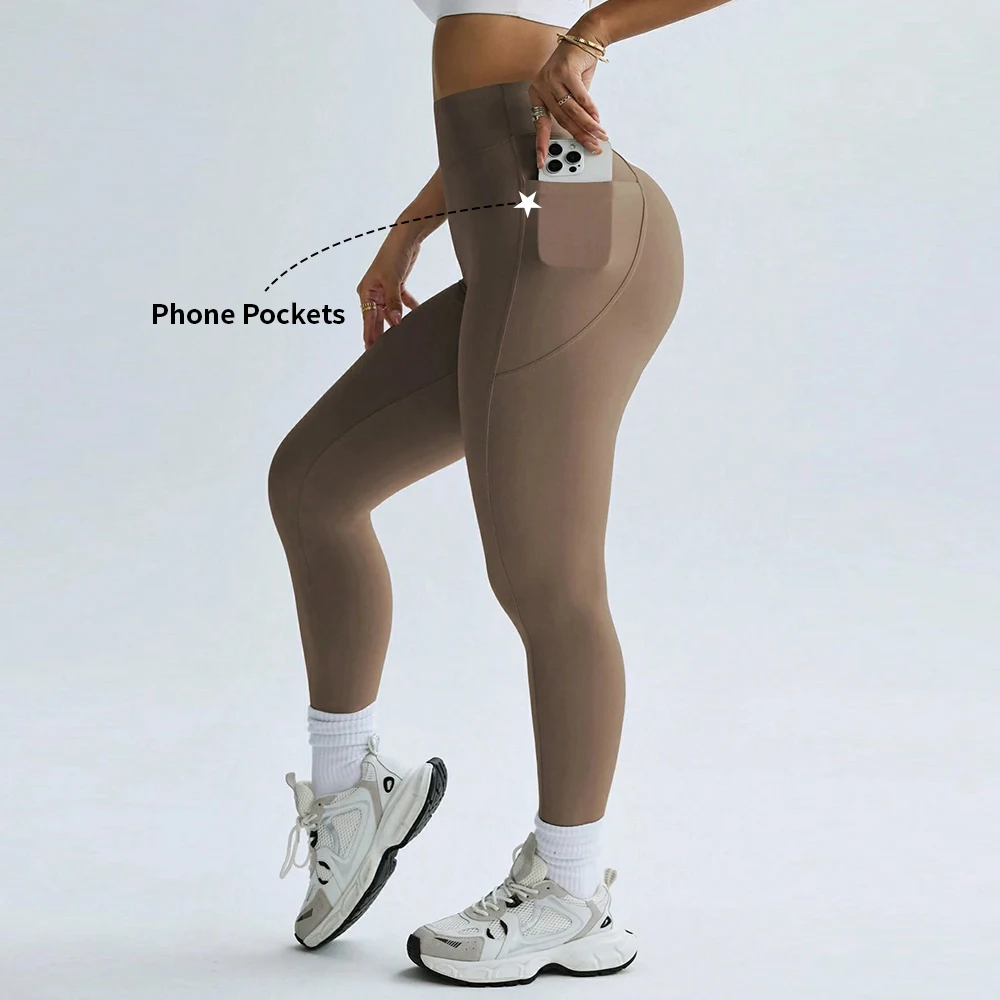 YISHENHON Custom Butt Lift Yoga Leggings for Women High Waist Sport Pants with Pockets Running Fitness Workout Gym Activewear