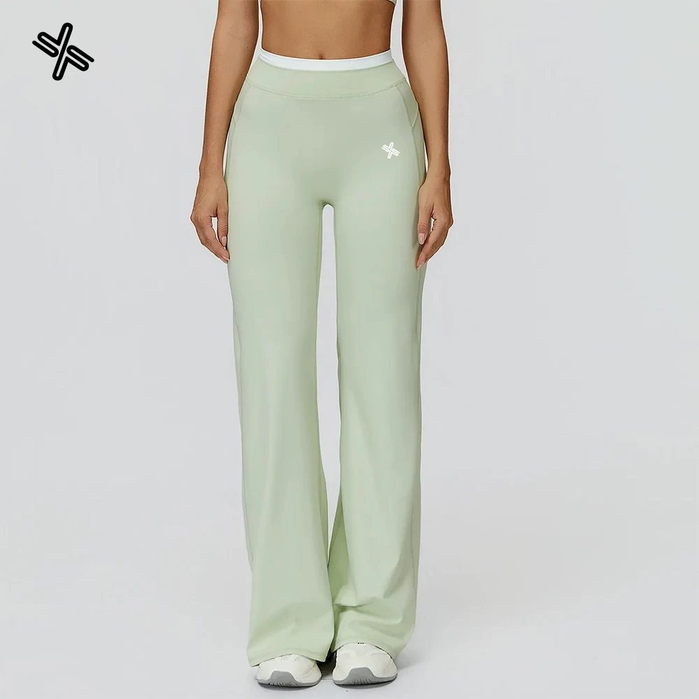YISHENHON High Quality Gym Yoga Flare Leggings Hot Selling High-Waisted Wide Leg Pants for Women Solid Casual Sport Running