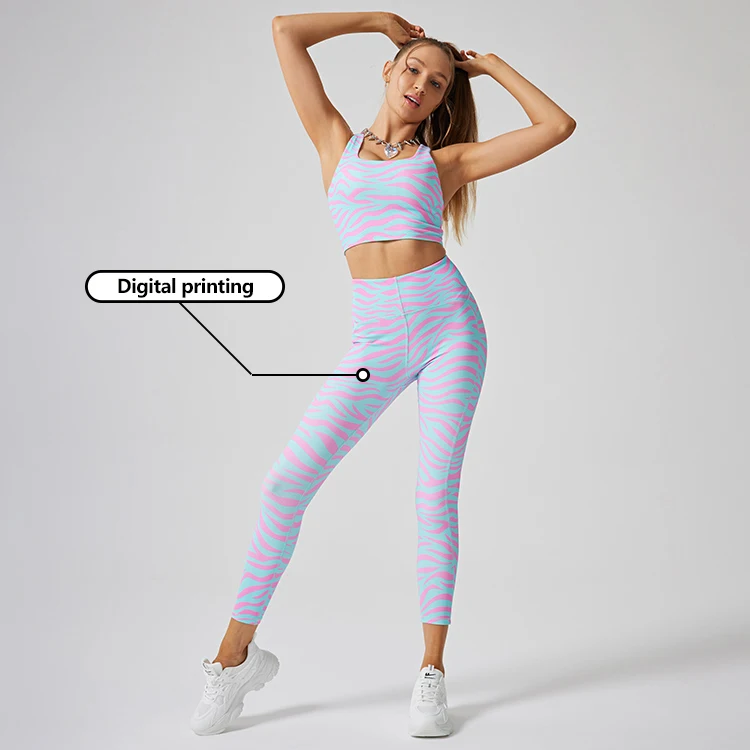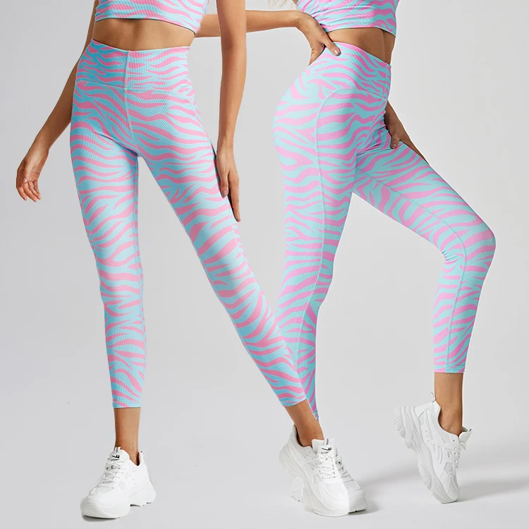 Factory 2026 High Waist Digital Printing New Style Yoga Leggings Gym Tights Ribbed High Impact Gym Leggings Print Yoga Leggings