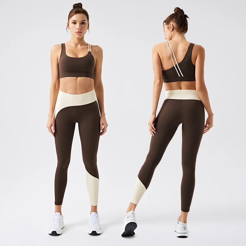 2 Piece Gym Set Women Workout Clothing Gym Set Custom Comfortable Striped Recyclable Yoga Sets for Summer Sustainable Activewear