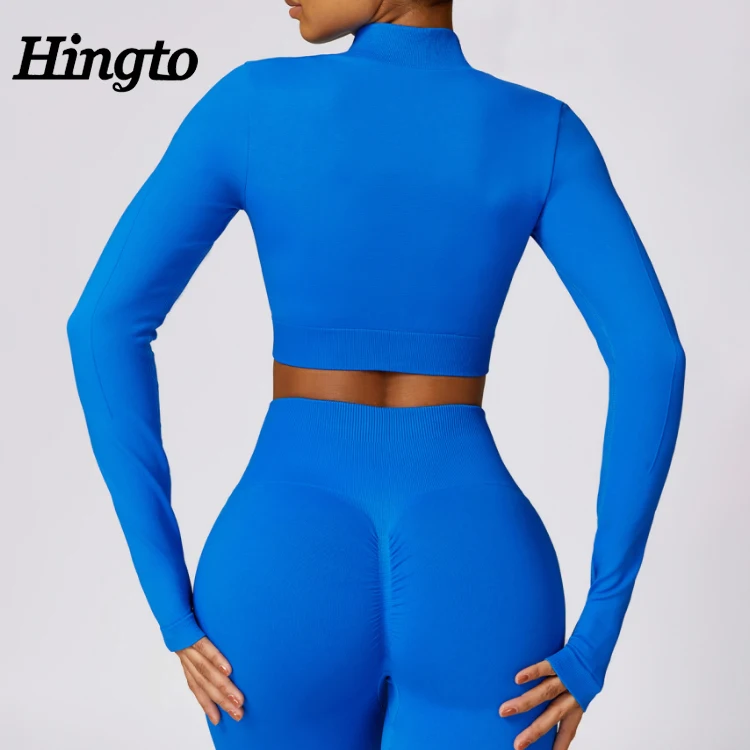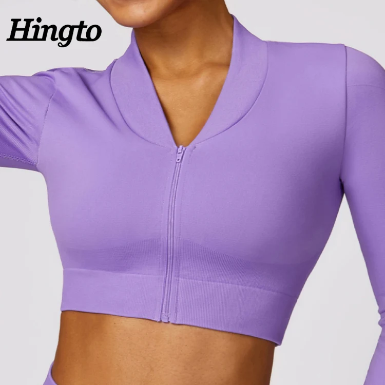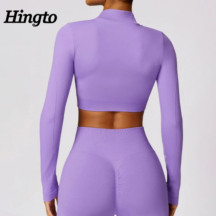 Manufacturer Women Seamless Running Sports Jacket Tight Seamless Long Sleeved Crop Tops Slim Fit Workout Yoga Jacket With Zipper