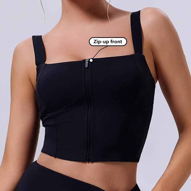 Biodegradable High Support Push up Custom Adjustable Sports Bra Recycled Front Zipper Gym Yoga Fitness Tops Sports Bra for Women