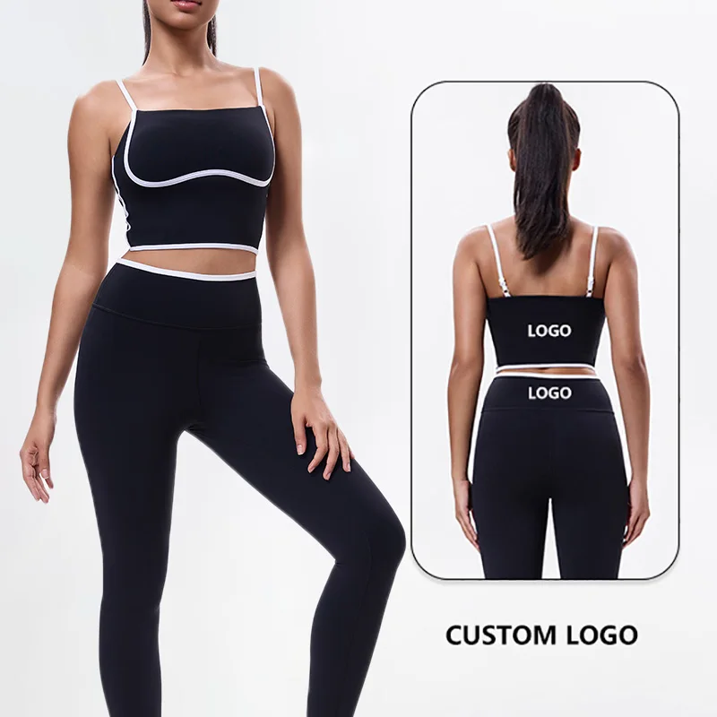 ODM OEM High Quality Custom Logo Women's Gym Sport Wear Fitness Workout Yoga Set Breathable Sports Bra Legging Striped Wholesale