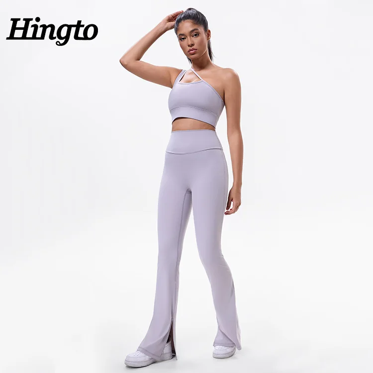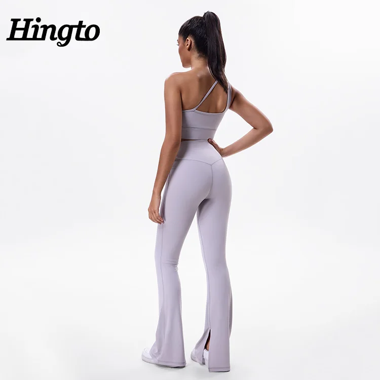 YISHENHON High Quality Gym Yoga Flare Leggings Hot Selling High-Waisted Wide Leg Pants for Women Solid Casual Sport Running