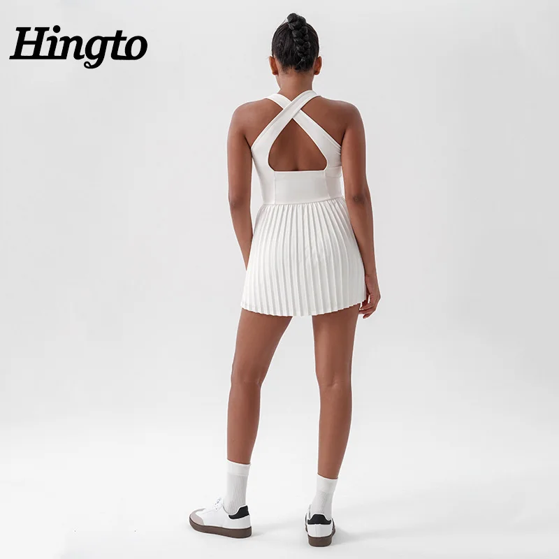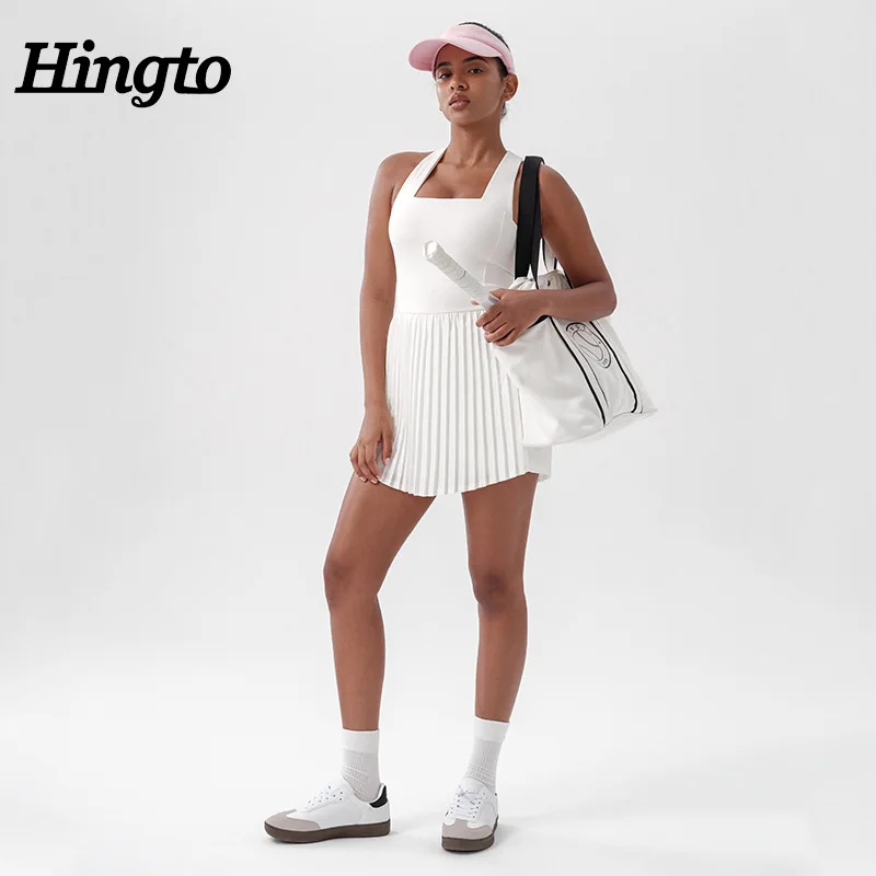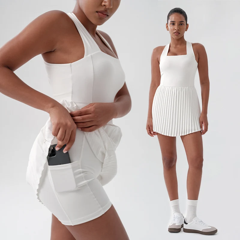 Sleeveless Quick Dry Outdoor Golf Athletic Dresses Breathable One Piece Sports Badminton Wear Fitness Pleated Dress With Pockets