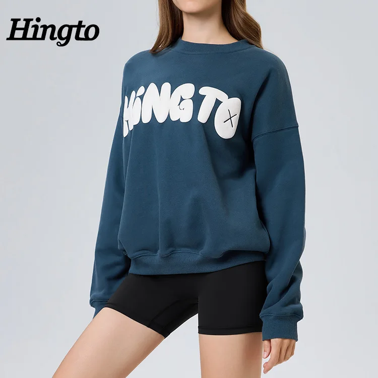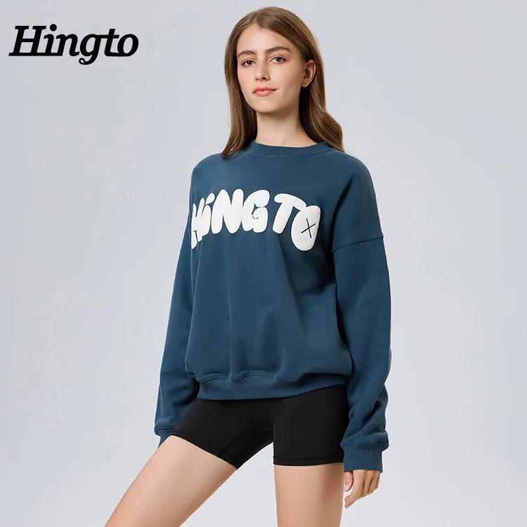 High Quality Manufacturer Ladies Oversized Hoodie OEM Custom Embossed Logo Pullover Casual Streetwear Women Crewneck Sweatshirt