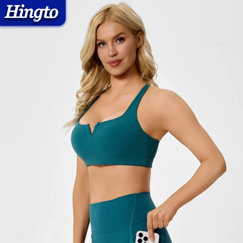 OEM ODM Manufactures Workout Top High Stretchy Yoga Bra Fashion High Quality Gym Bra Crossback Fitness Gym Top V-Neck Sports Bra