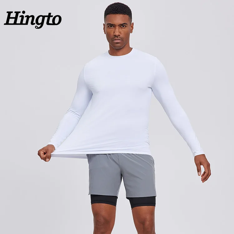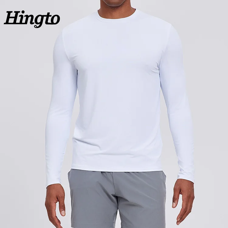 Custom Polyester Athletic Running T-shirt Mens Gym Elastic Blank Lightweight Sports Tshirts Long Sleeve Fitness T-shirt for Men