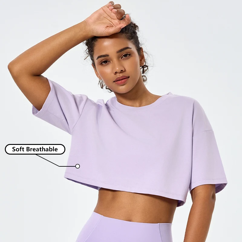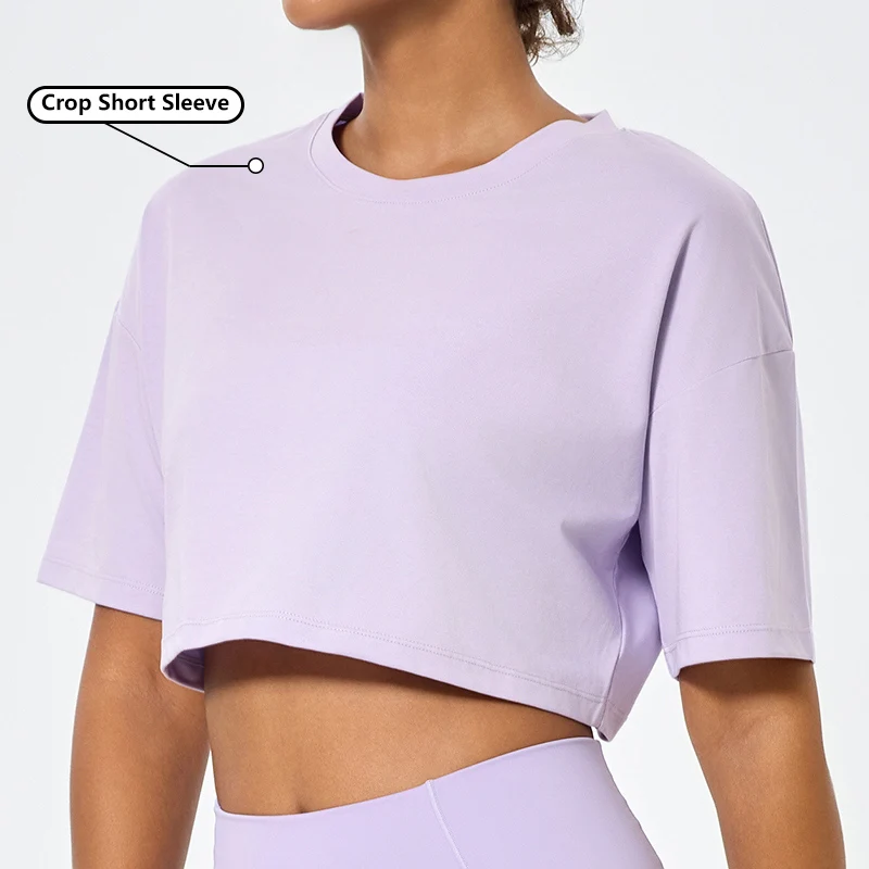OEM Manufacturer Summer Casual Crop Top Loose Breathable Quick Dry Sport T Shirts Custom Logo Womens Short Sleeve Yoga Crop Tops