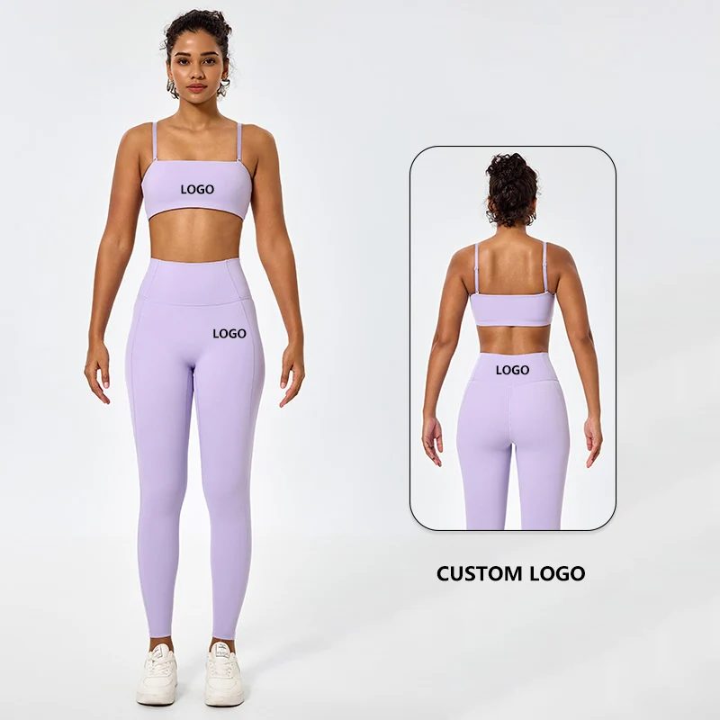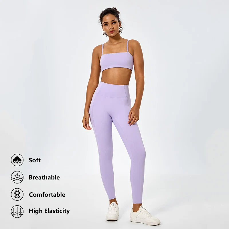 Fitness Leggings Yoga Set Sport Gym Clothes Women's Fitness Sportswear Women Workout Sets Purple 4 Way Stretch Soft Active Wear