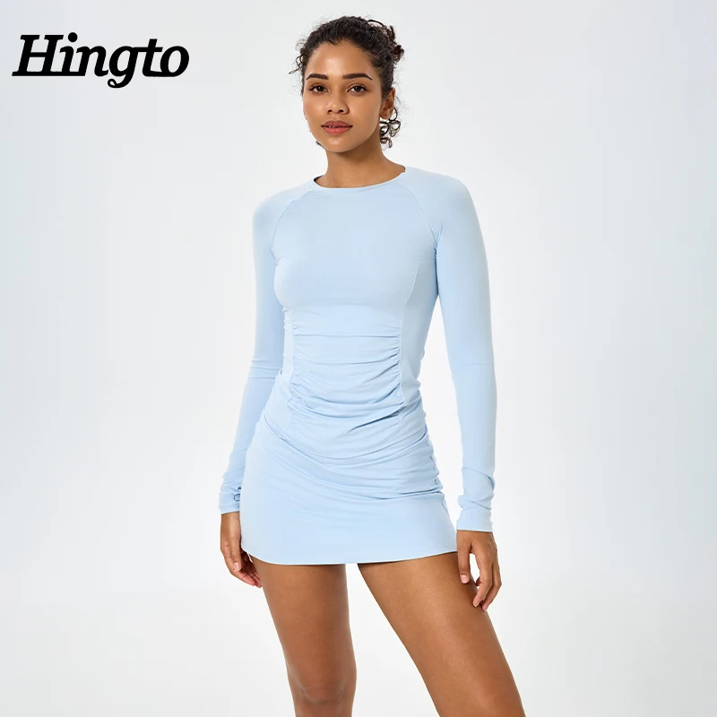 YISHENHON Women's Outdoor Running Tennis Skirt Anti-slip A-Line Skirt with Stand Collar and One Piece Dress Cloud Sense Design
