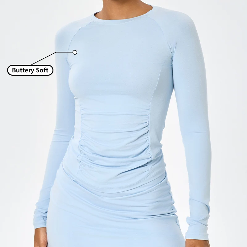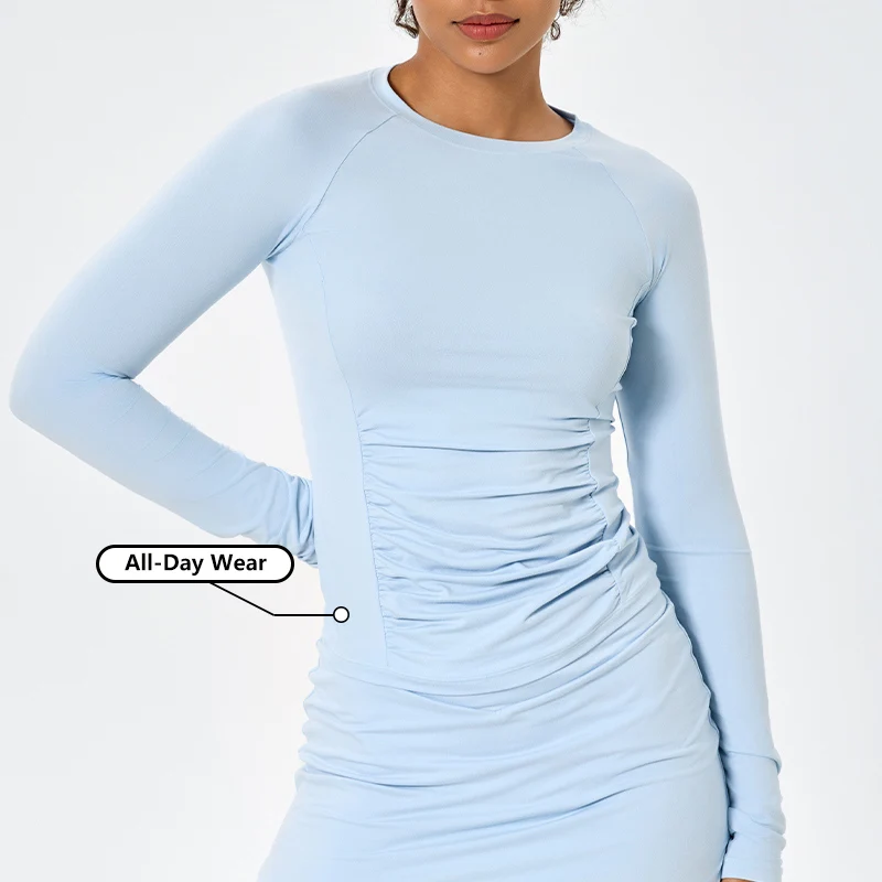 Women's High Quality Quick Dry Workout Activewear Tight Yoga Top Soft Outdoors Slim T Shirt for Running Ruched Long-Sleeve Top
