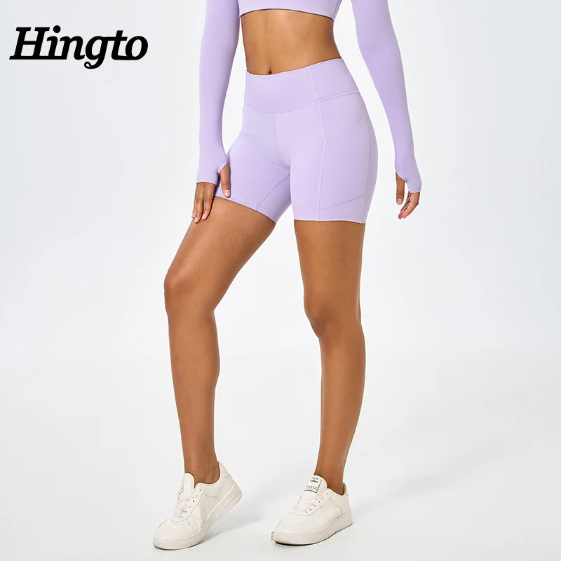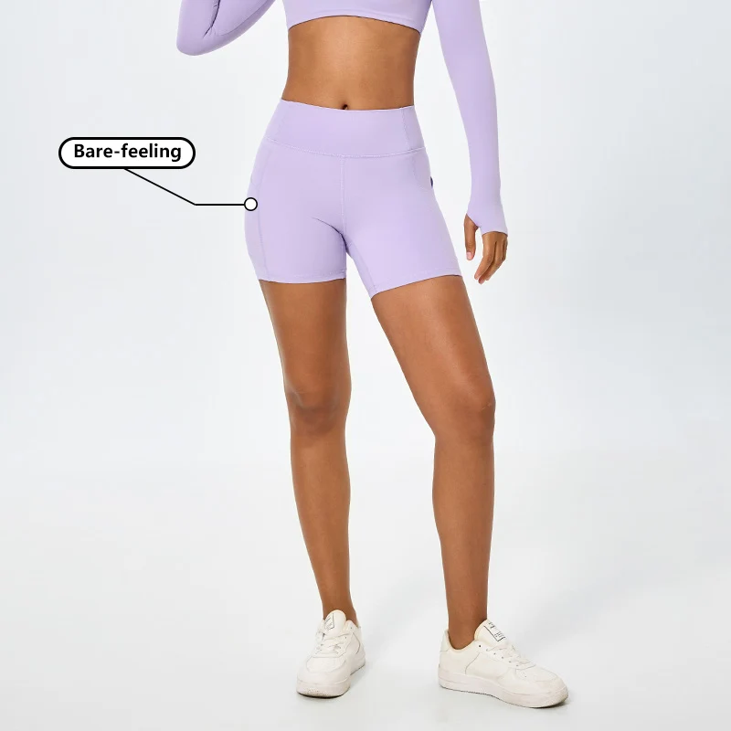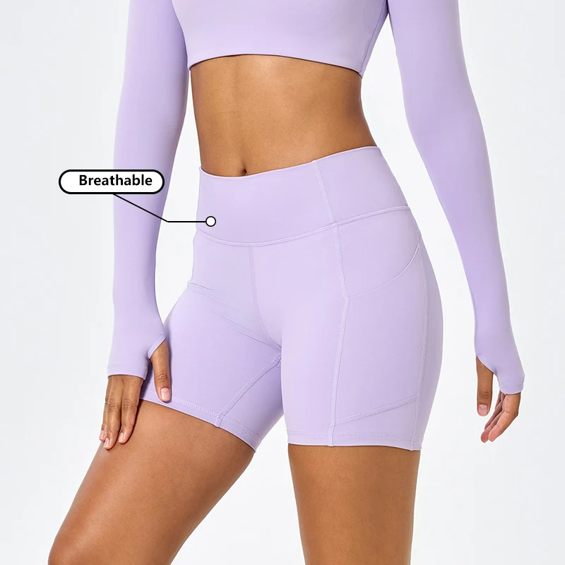 Wholesale Tight Yoga Shorts Buttery Soft Custom Stretch Compression Shorts Women High Waist Running Fitness Shorts with Pocket