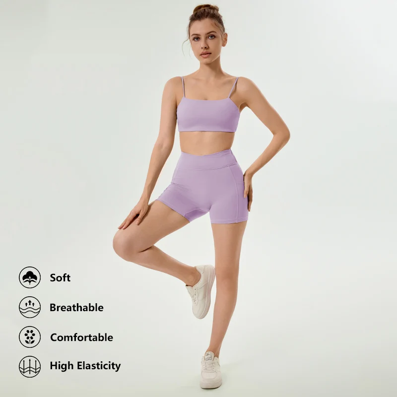 Custom Logo Women 2 Piece Gym Sports Biker Shorts Sets Yoga Wear Fitness Breathable Yoga Sets Classic Gym Workout Exercise Set