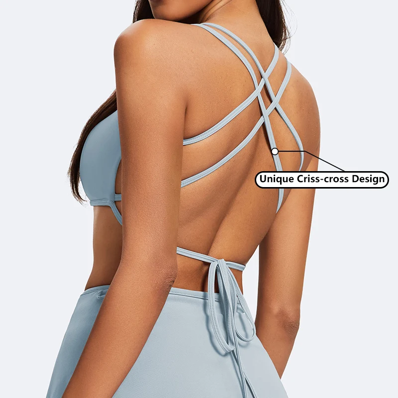 Manufacturer Custom Logo High Quality Fitness Active Bra New Sexy Cross Back Sports Bra for Women Gym Bra Breathable Yoga Top