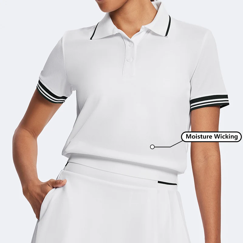 100% Polyester Quick Dry Gym Short Sleeve Tennis Badmition Shirts Custom Polo Shirts Women Ribbed Comfort Sport Golf Shirt Women