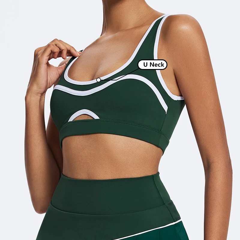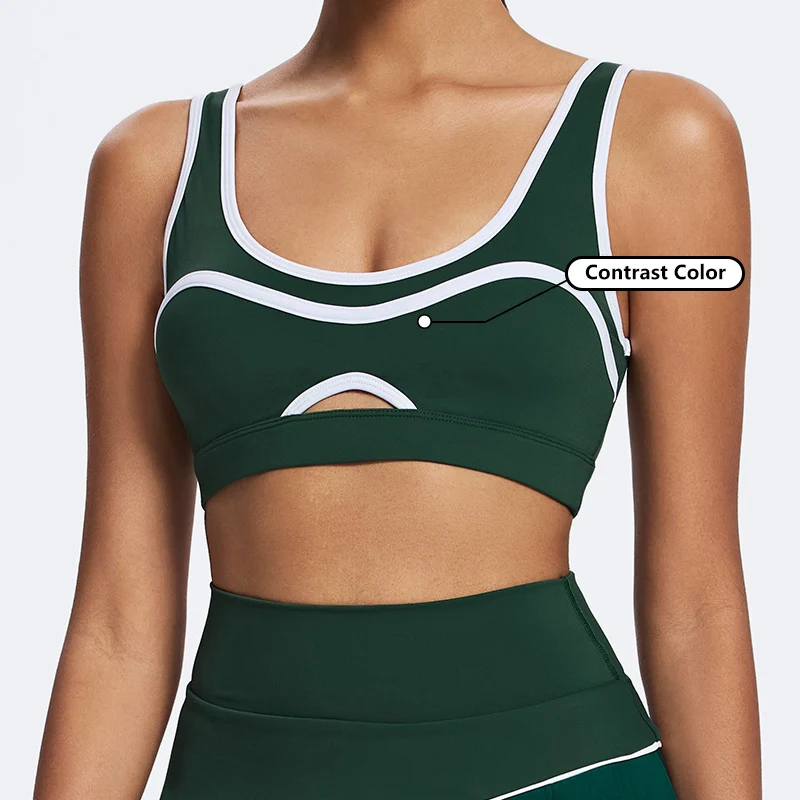 U Neck Contrast Color Custom Logo Sports Bra Cutout Gym Top Fitness Open Back Sports Bra High Quality Custom Logo Workout Bra