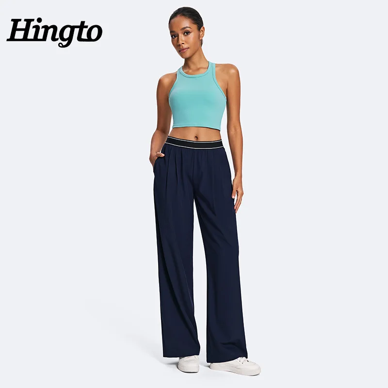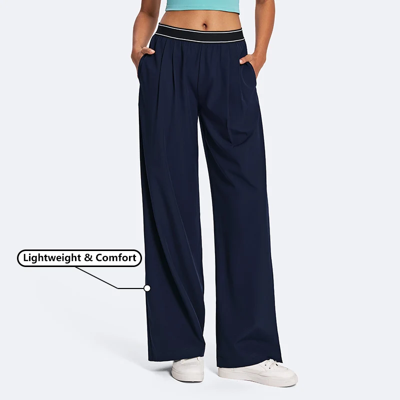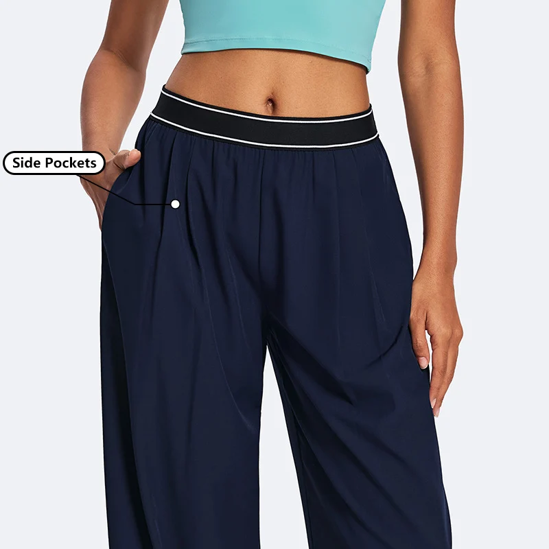 Women's Elastic Waist Wide Leg Pants Athletic Casual Trousers Loose Fit Sports Pants Custom Logo Leisure Trousers With Pockets