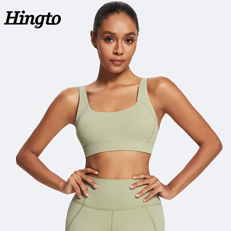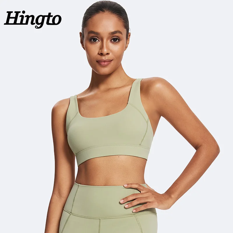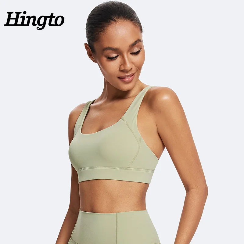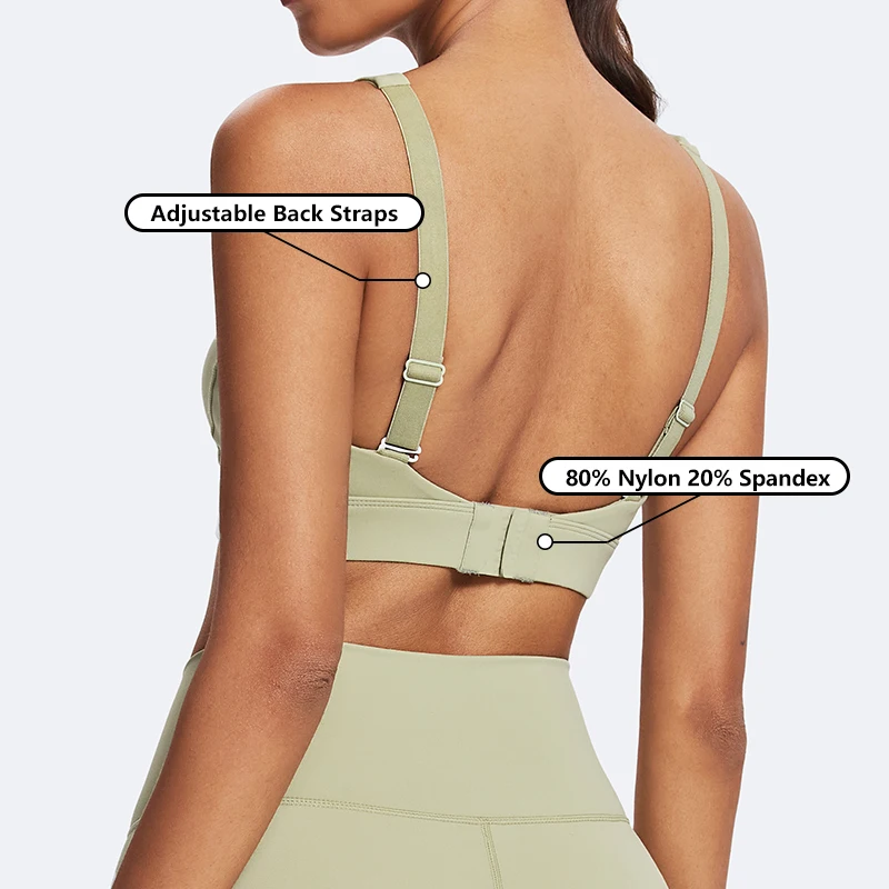 80%Nylon 20%Spandex Gym Workout Bra High Quality Breathable High Support Sports Bra Green Custom Adjustable Straps Sports Bra