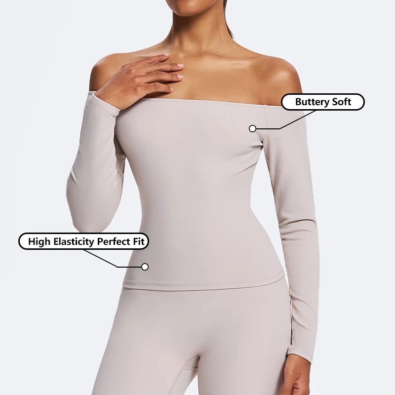 High Quality Soft Lightweight Slim Fit Tight Shirts Wholesale New Straight Off Shoulder Long Sleeve Quick-drying Running Top
