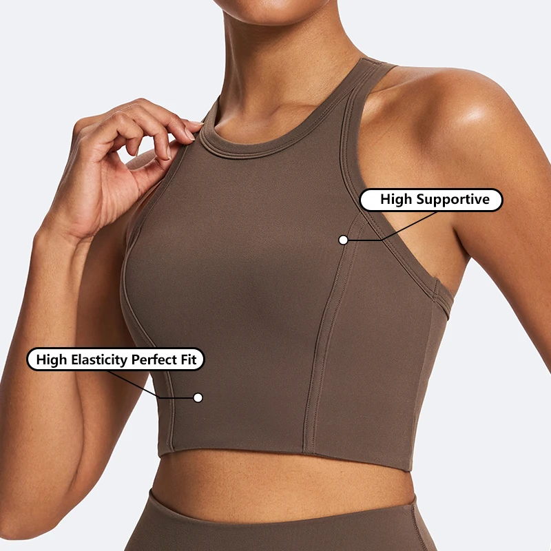 ODM High-Neck Training Running Sports Bra Fleece Sports Vest 69%Nylon 31%Spandex Fitness Top Rank Back Yoga Gym Sports Tank Top