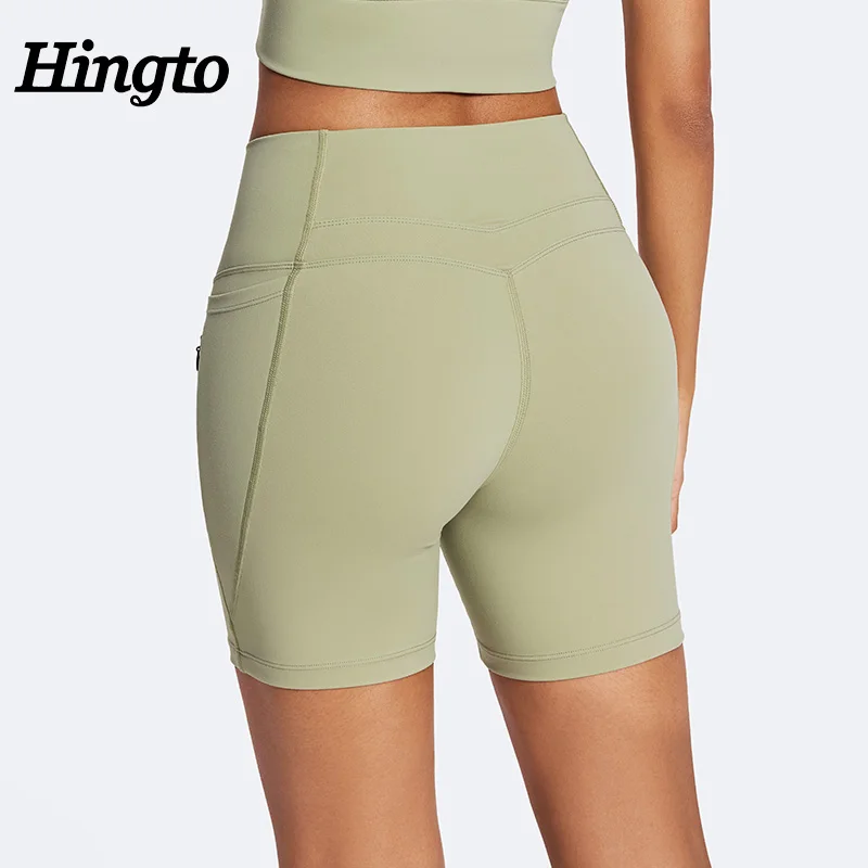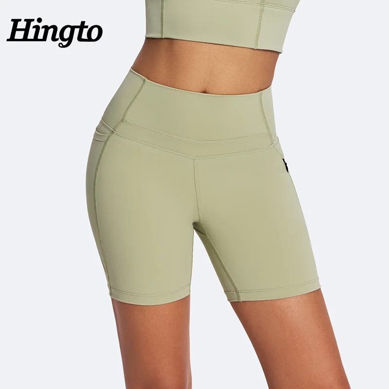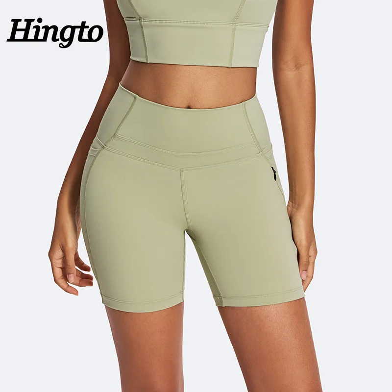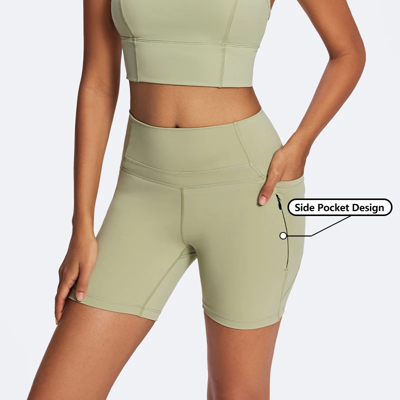 ODM High Quality Elastic Waist Women's Summer Workout Running Sports Biker Shorts Custom Tights Yoga Gym Shorts with Side Pocket
