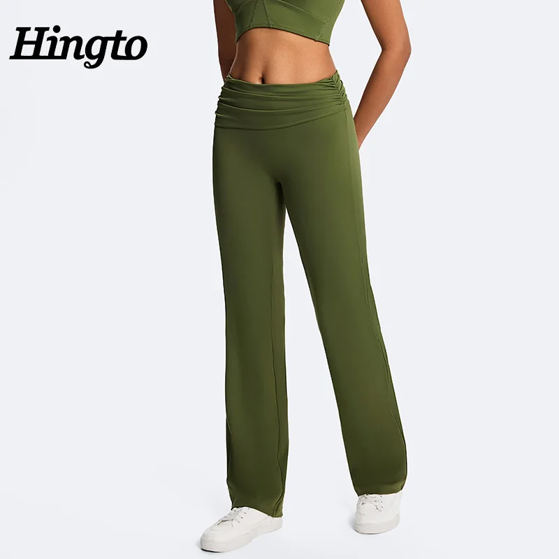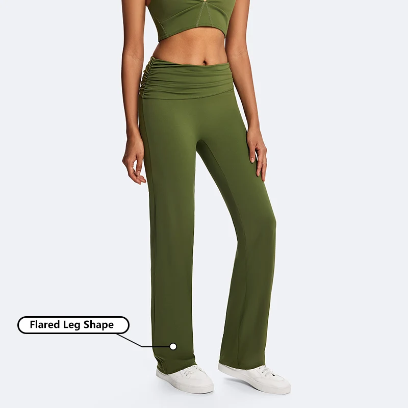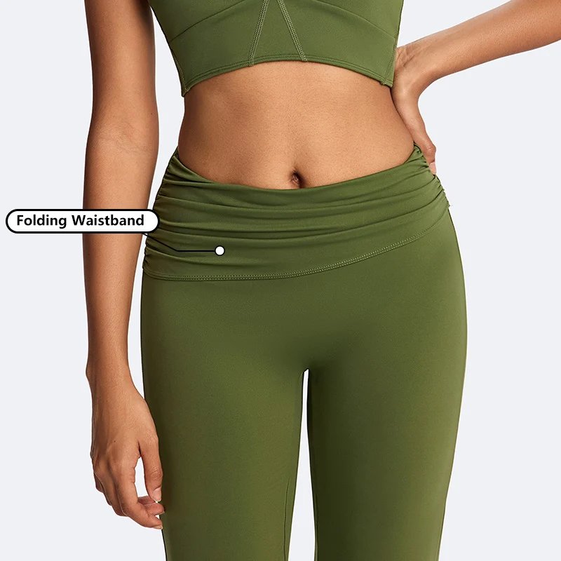 Recycled Nylon Women's Folding Waistband Flard Pants Workout Sports Leggings Yoga Gym Fitness Leggings for Women High Quality