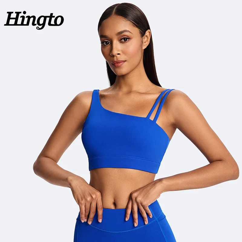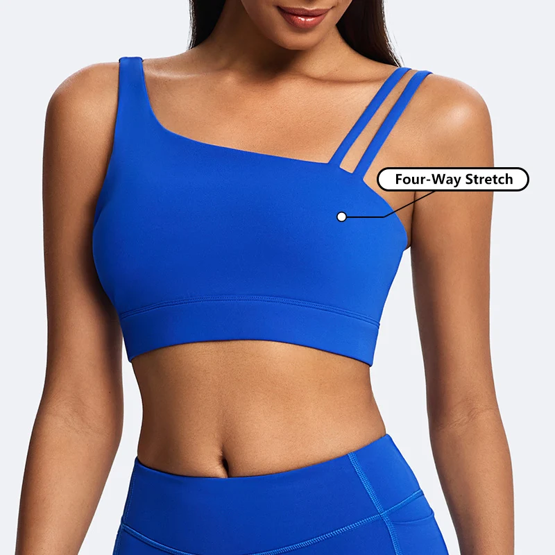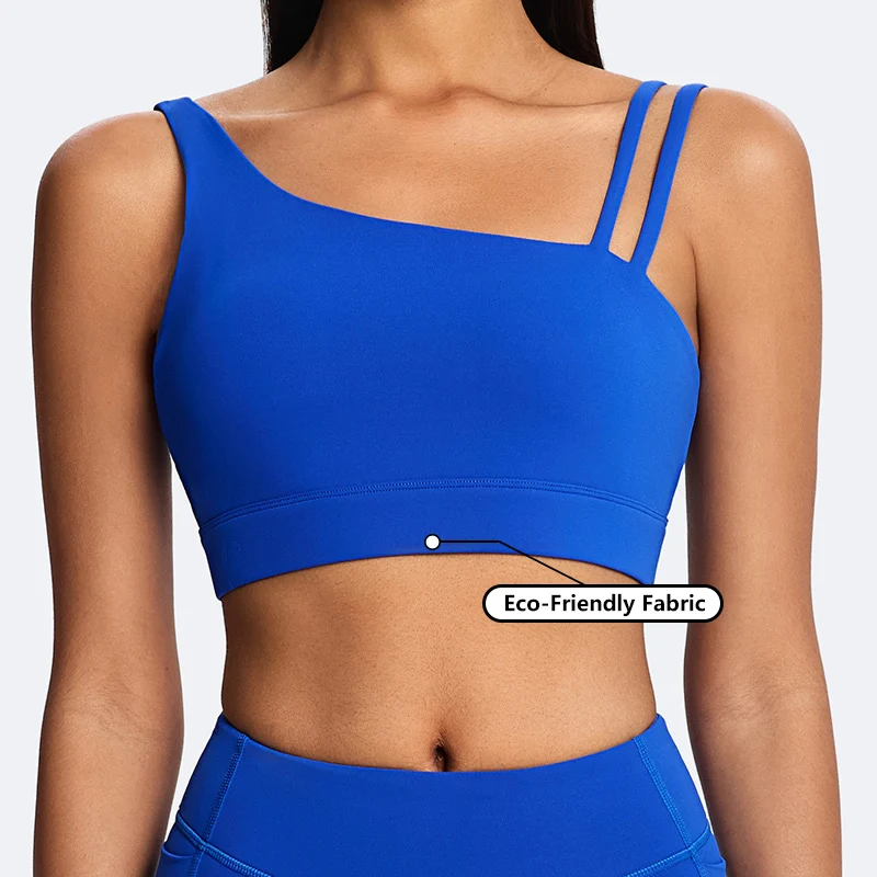 Custom Logo Workout High Quality Recycled Nylon Breathable Active Bra Irregular Shoulder Strap Yoga Bra Fashionable Sports Bra