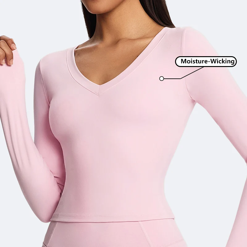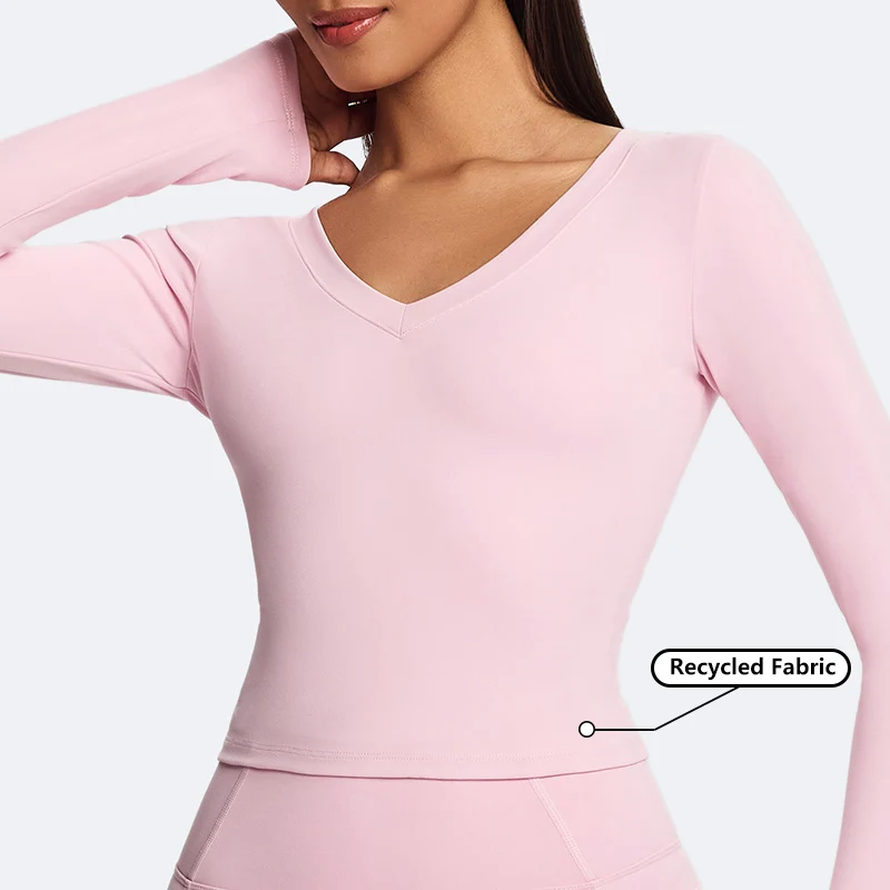 High Quality Soft 82% Recycled Polyester 18% Spandex Workout Compression T Shirt Minimalist Slim-Fit Athletic Long Sleeve Top