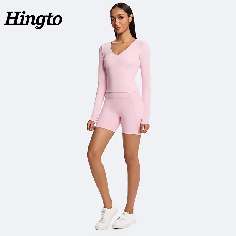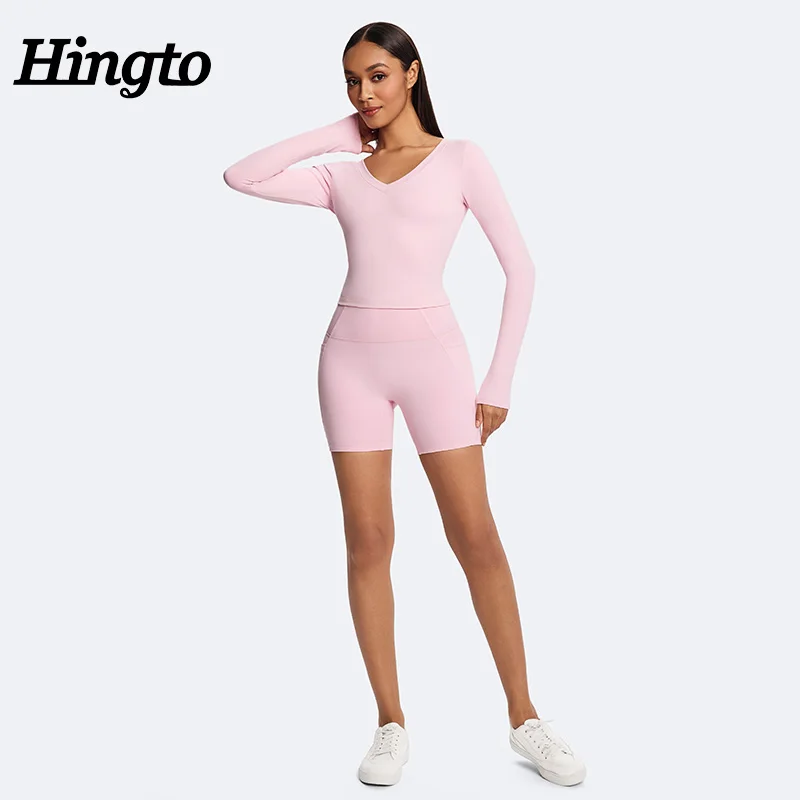 YISHENHON Women's Fitness Activewear Set 5pcs Seamless Yoga Leggings & Bras with Long Sleeve Gym Tops Solid Pattern Sport Outfit
