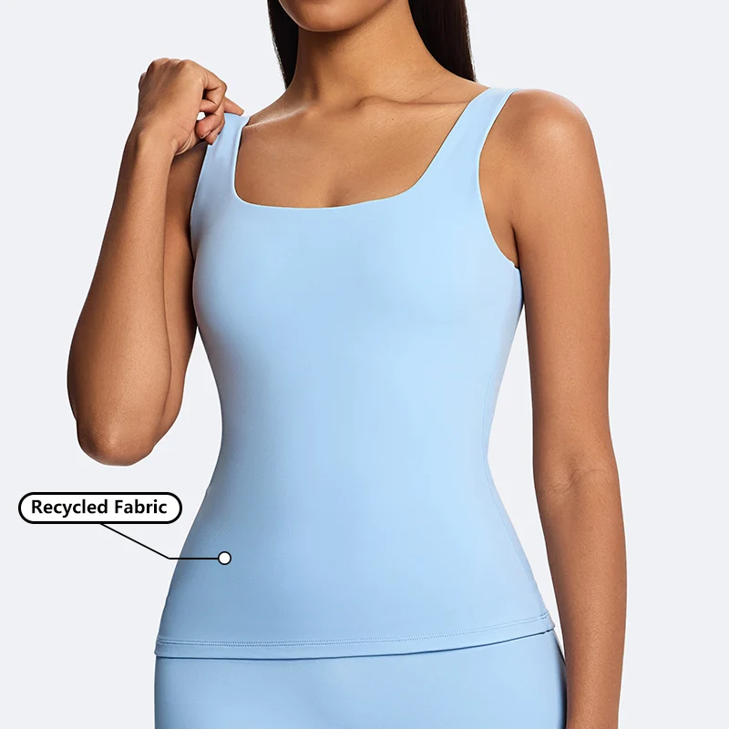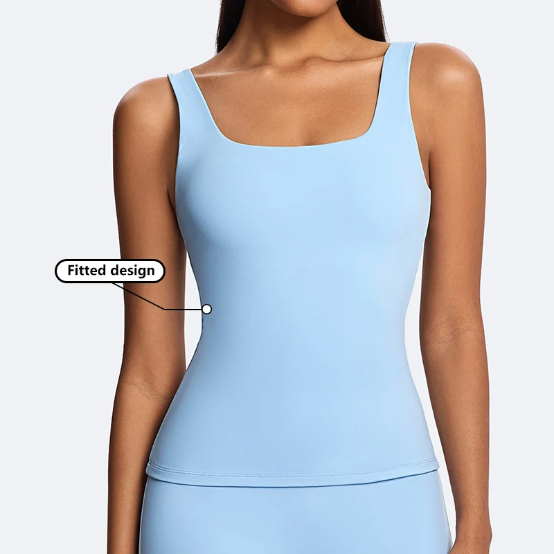 High Quality Square Neck Breathable Basci Tank Top Lightweight Outdoor Running Yoga Vest Women's Sleeveless Fitness Tank Tops