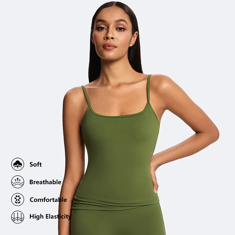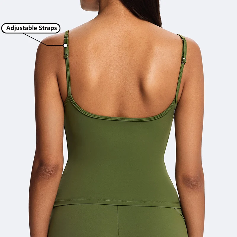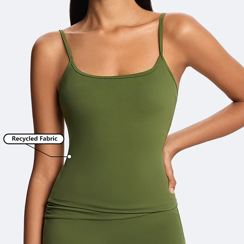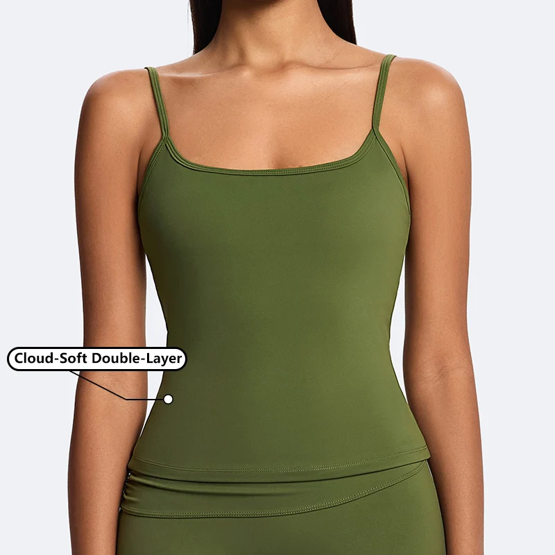 Summer Casual Cloud-Soft Double-Layer Camisole Recycled Nylon Buttery Soft Workout Exercise Tank Top Adjustable Strap Sling Tops