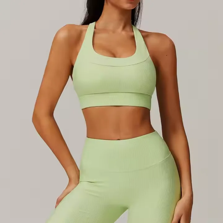 YISHENHON OEM/ODM Custom Workout Halter Scrunch Sports Bra Women Girls Stretchy Compression Quick Dry Padded Sexy Pants Polybag