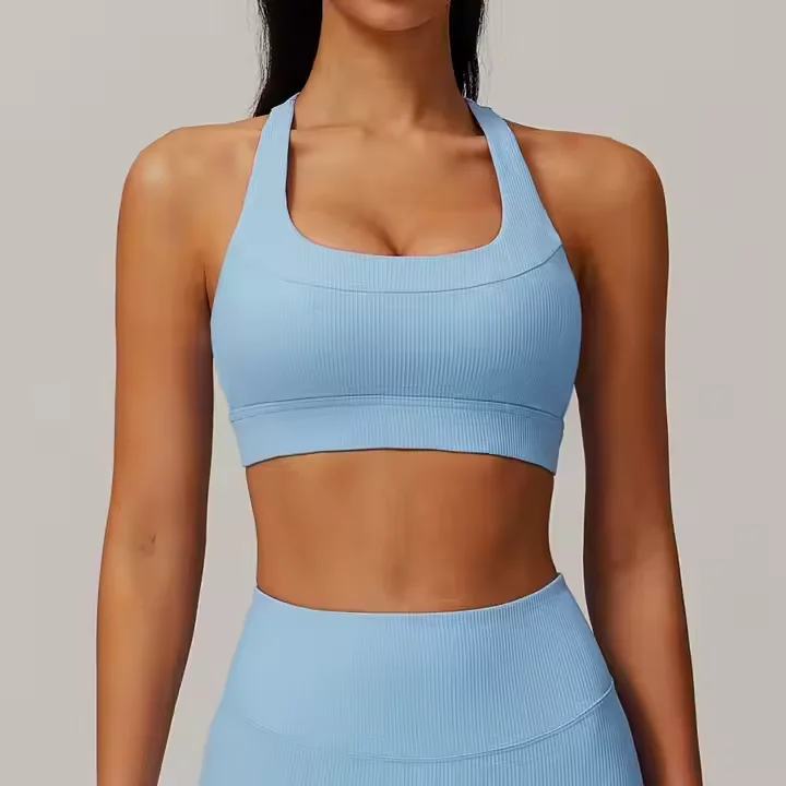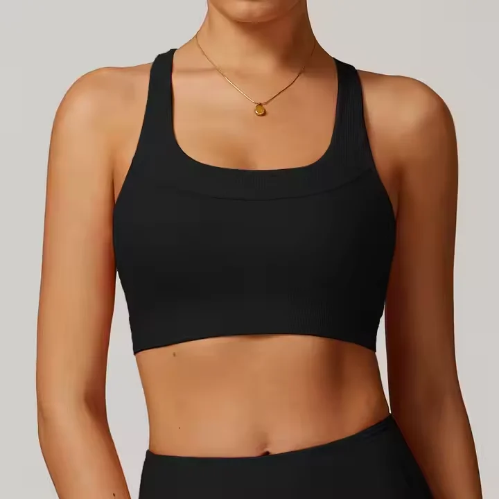 TOPKO High Quality OEM Women's Ribbed Tight Yoga Bra Wear Running Fitness Top Shock-proof Quick-drying Sports Underwear