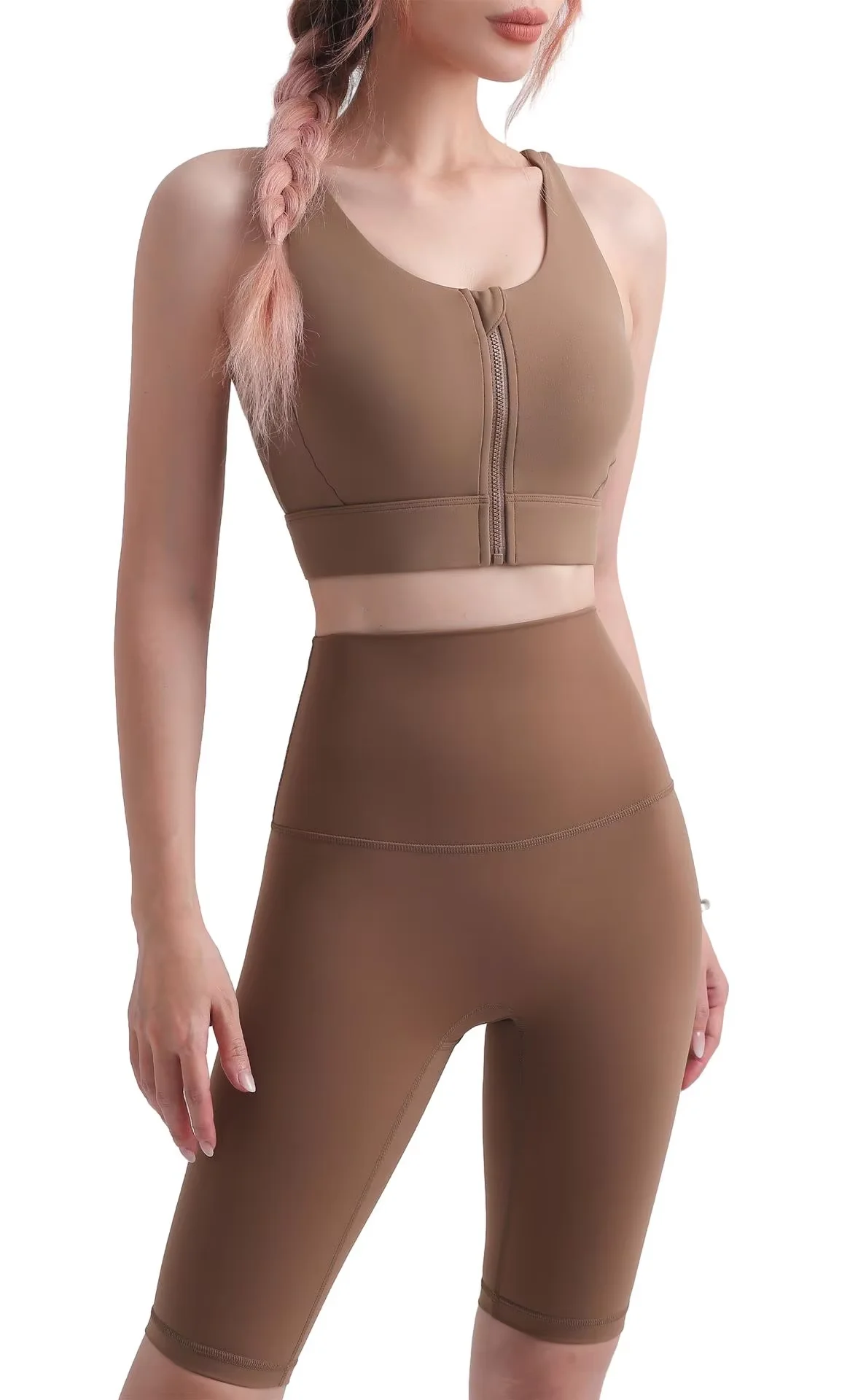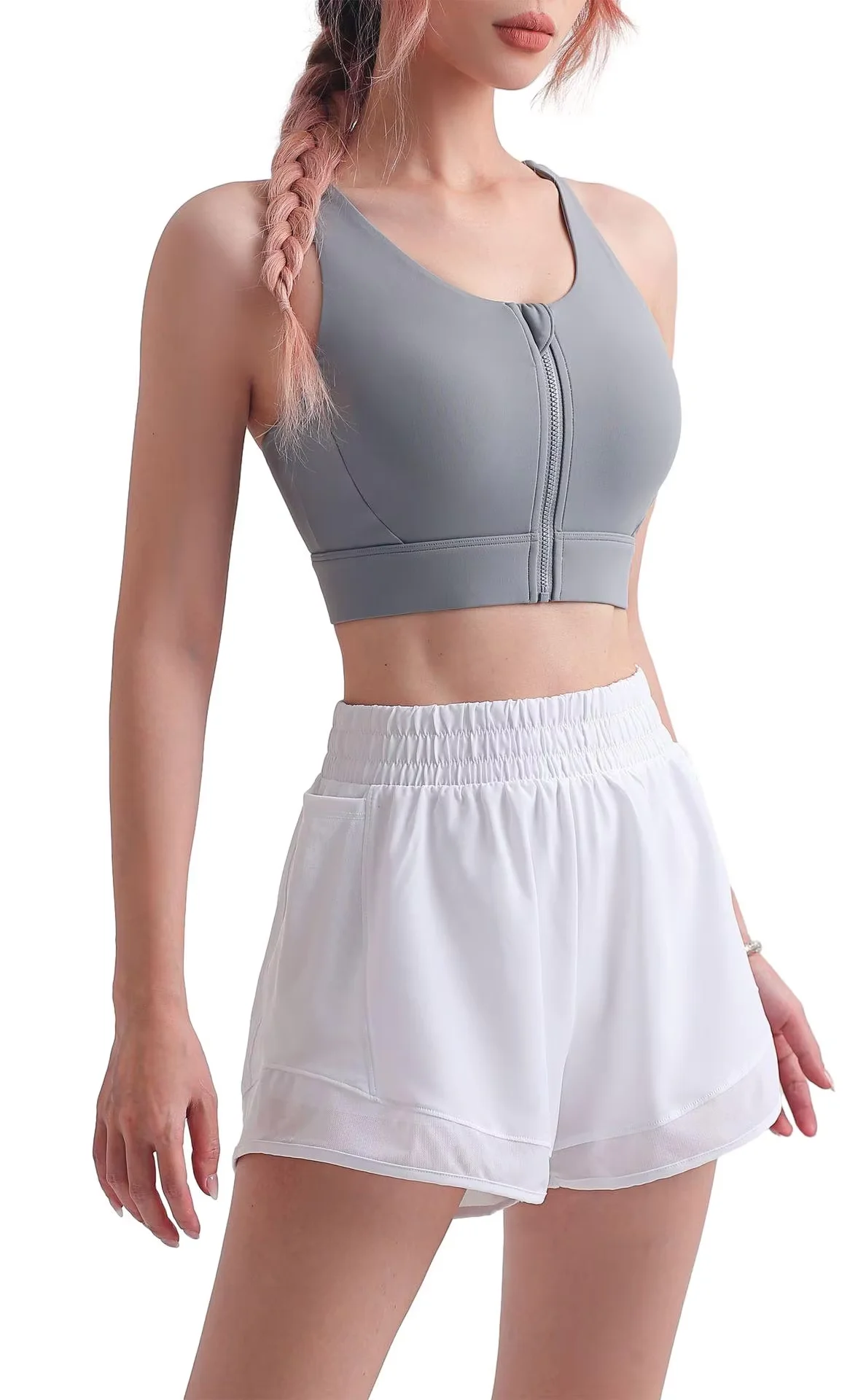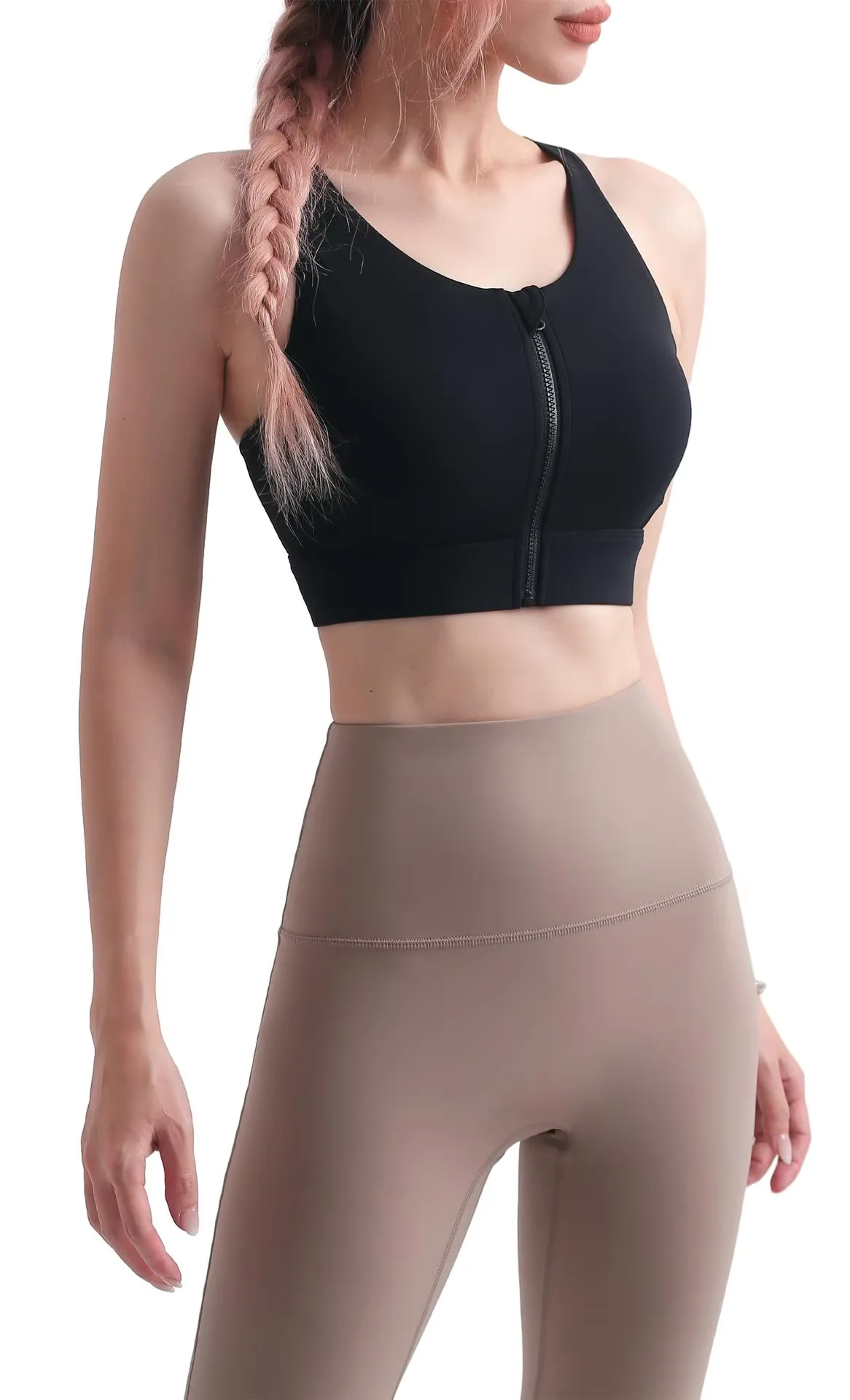 TOPKO Ready to Ship Solid Medium Strength Cool Zipper Shock-proof Bra Summer Beauty Back Hot Yoga Bra
