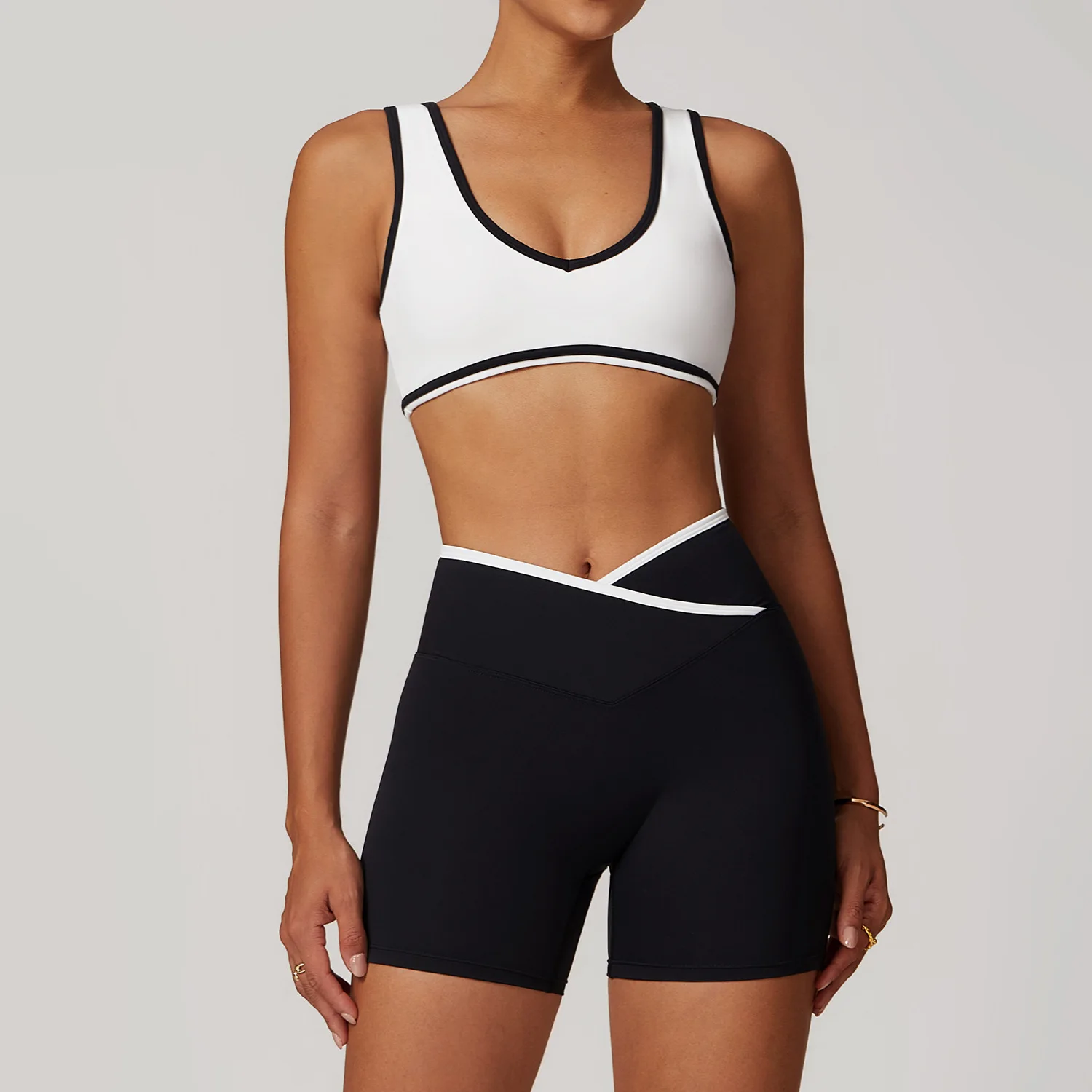 Topko Women's New Color Contrast Wide Strap Sports Underwear Shockproof Yoga Bra Outdoor Fitness Wear