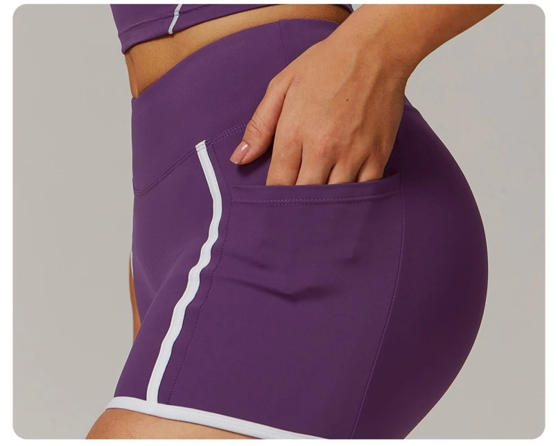 TOPKO High Quality ODM OEM Women's Pocket Nude Yoga Shorts High Waist Wrap Waistline Sweatpants Workout Shorts