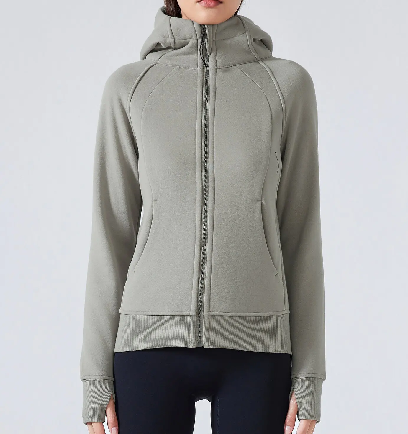 YISHENHON Custom Logo Slim Workout Top Yoga Jackets Zipper Womens Tight Quick Dry Long Sleeve Yoga Sports Coat With a Hat