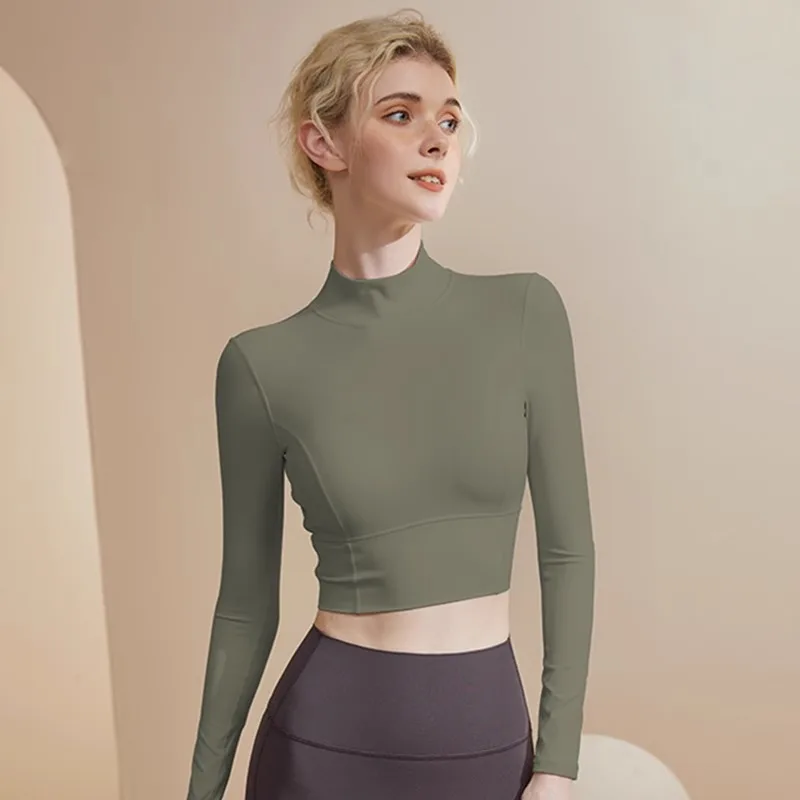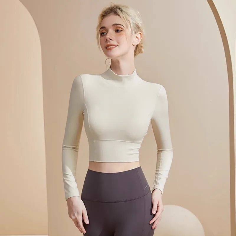 Beautiful Back With Chest Pad Yoga Wear Women's High Neck Slimming blazer Running Pilates Fitness Wear Long Sleeve Autumn