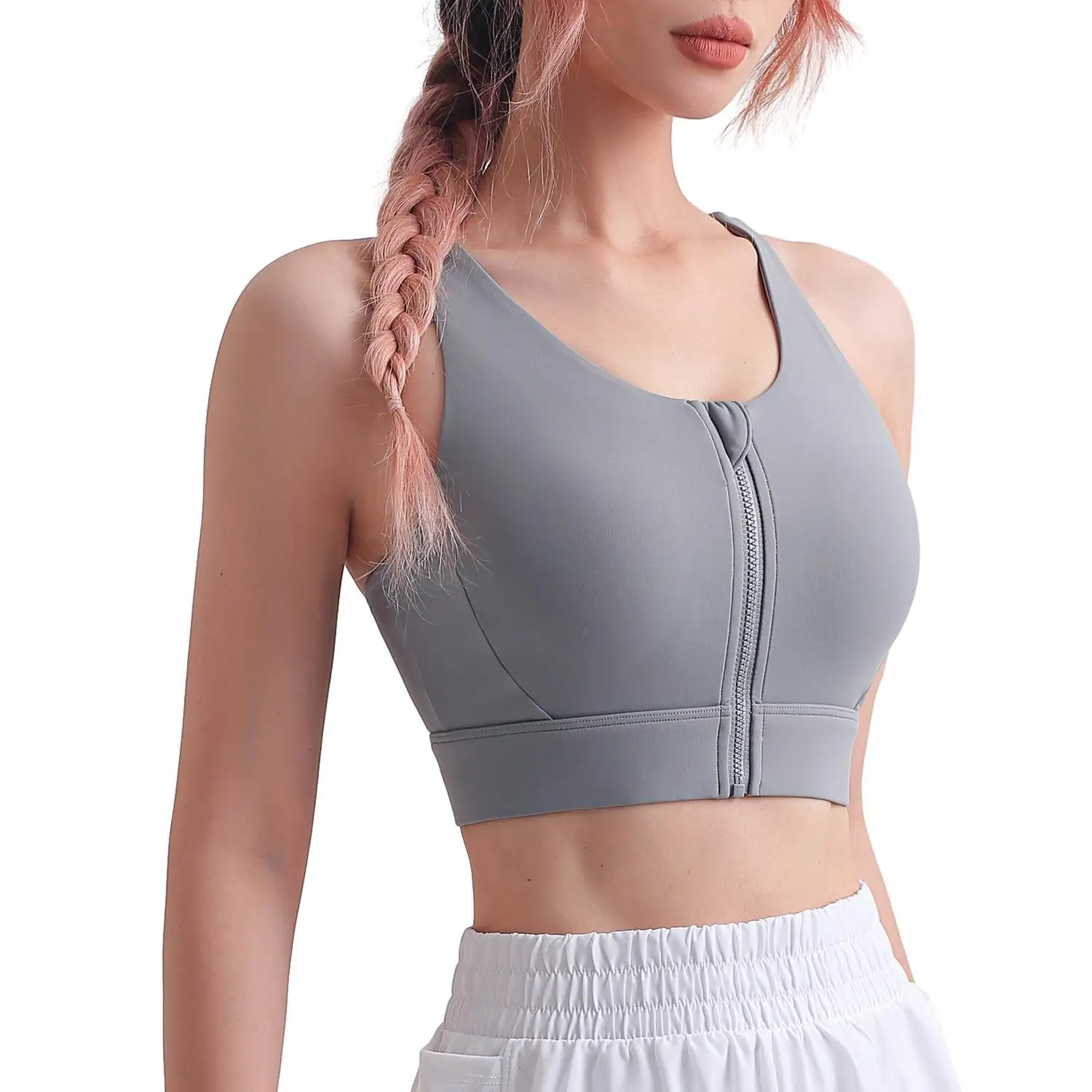 TOPKO Ready to Ship Solid Medium Strength Cool Zipper Shock-proof Hot Sexy Yoga Bra