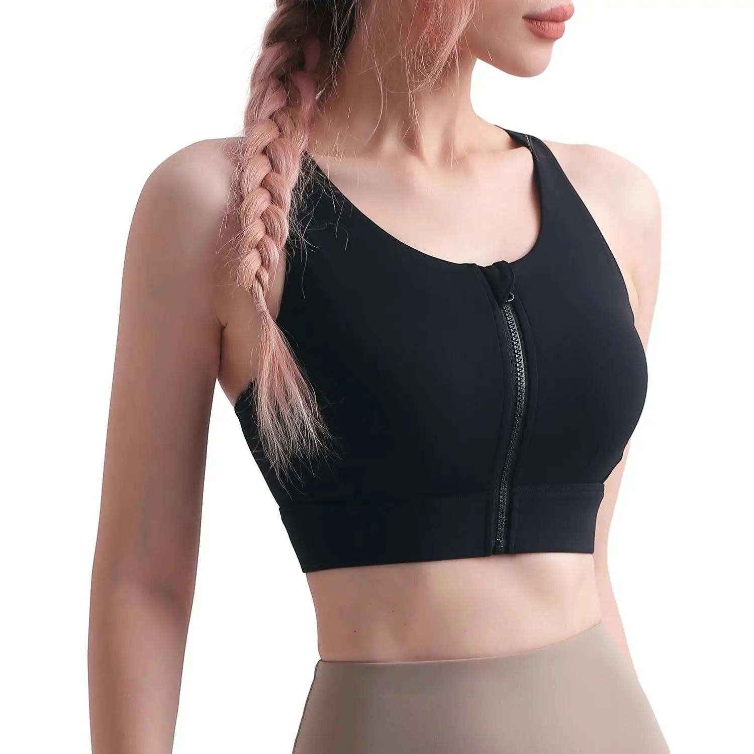 TOPKO Ready to Ship Solid Medium Strength Cool Zipper Shock-proof Soft Quick Dry Yoga Running Gym Sexy Sports Bra