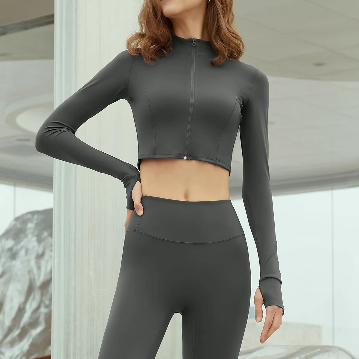 YISHENHON Custom Women's Yoga Jackets Thumb Hole Zipper Lightweight Fitness Sports Jackets Workout Yoga Clothing With Pocket