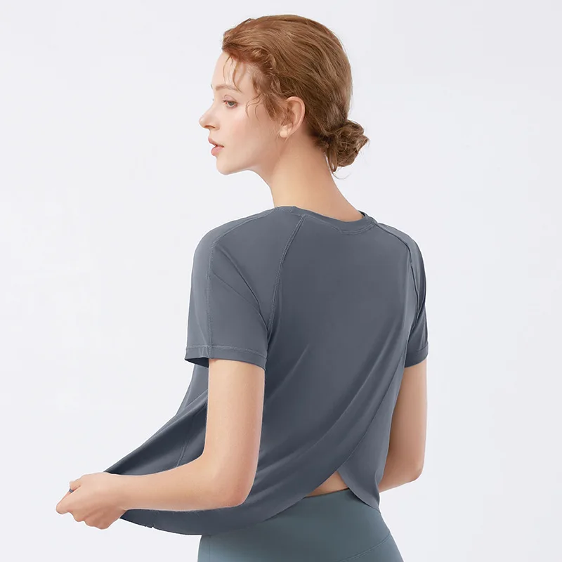 TOPKO Short-sleeved T-shirt Yoga Sports Blouse Women's Back Hem Slit Short Quick-drying Yoga Clothes Top