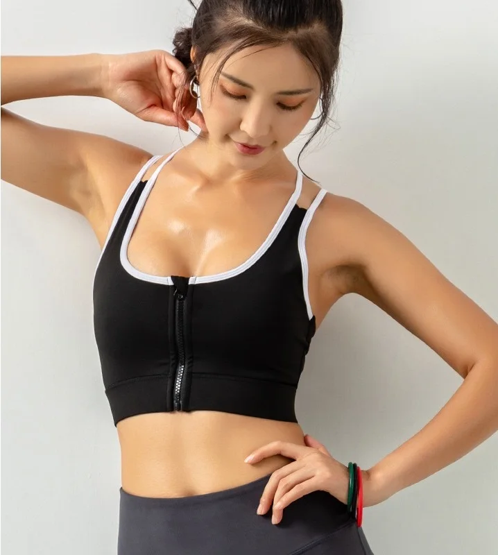 TOPKO High Quality Hot Selling Women Sexy Sports Workout Fitness Front Zipper Yoga Bra