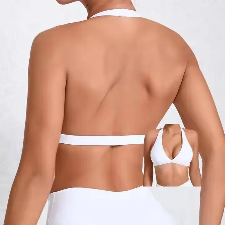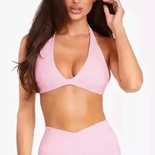 Custom Pink New Womans Sports Bra Bralette Gym Active Wear Workout Top Medium Halter Deep V Neck Sports Bra for Women
